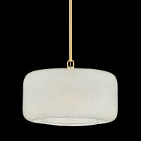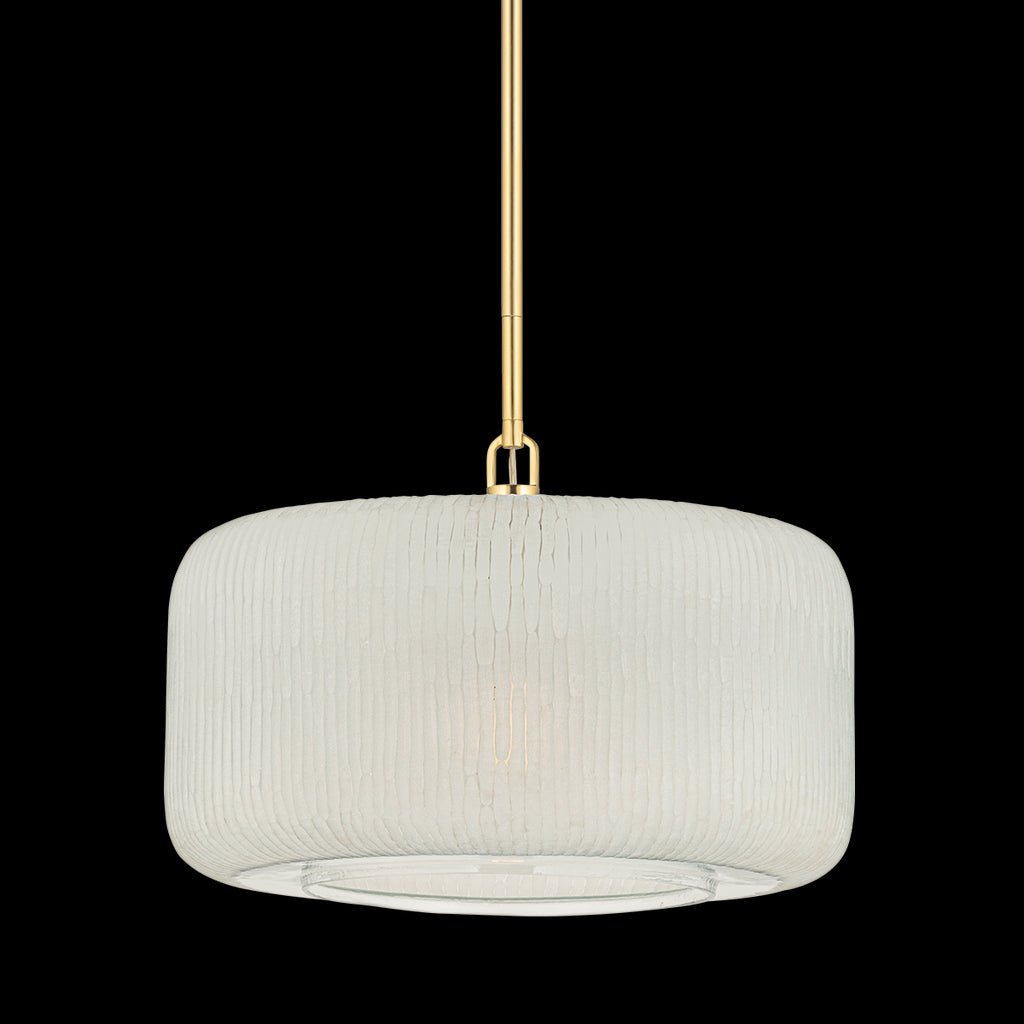 A companion to Falls Mills, Beechurst features hand-cut Indian glass in an exquisite chiseled pattern. Available in two sizes, the wide drum shape of the shade showcases the rippling glass from all angles. The Aged Brass metalwork provides an upscale complement to the statement glass.