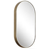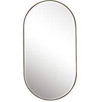 This oval mirror is a true masterpiece of luxury and elegance. The petite iron frame embraces the beveled mirror with a deep edge, showcasing the captivating antiqued golden bronze finish. With a generous 1" bevel, this mirror adds depth and sophistication to any space. This mirror will elevate your decor with timeless beauty.