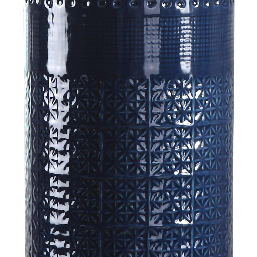 Introducing our exquisite lamp adorned with intricate embossed ceramic, bathed in a regal royal blue glaze. Every detail is meticulously crafted to perfection, enhanced by the presence of brushed nickel plated accents. Elevate your space with this luxurious piece that effortlessly combines artistry and elegance.