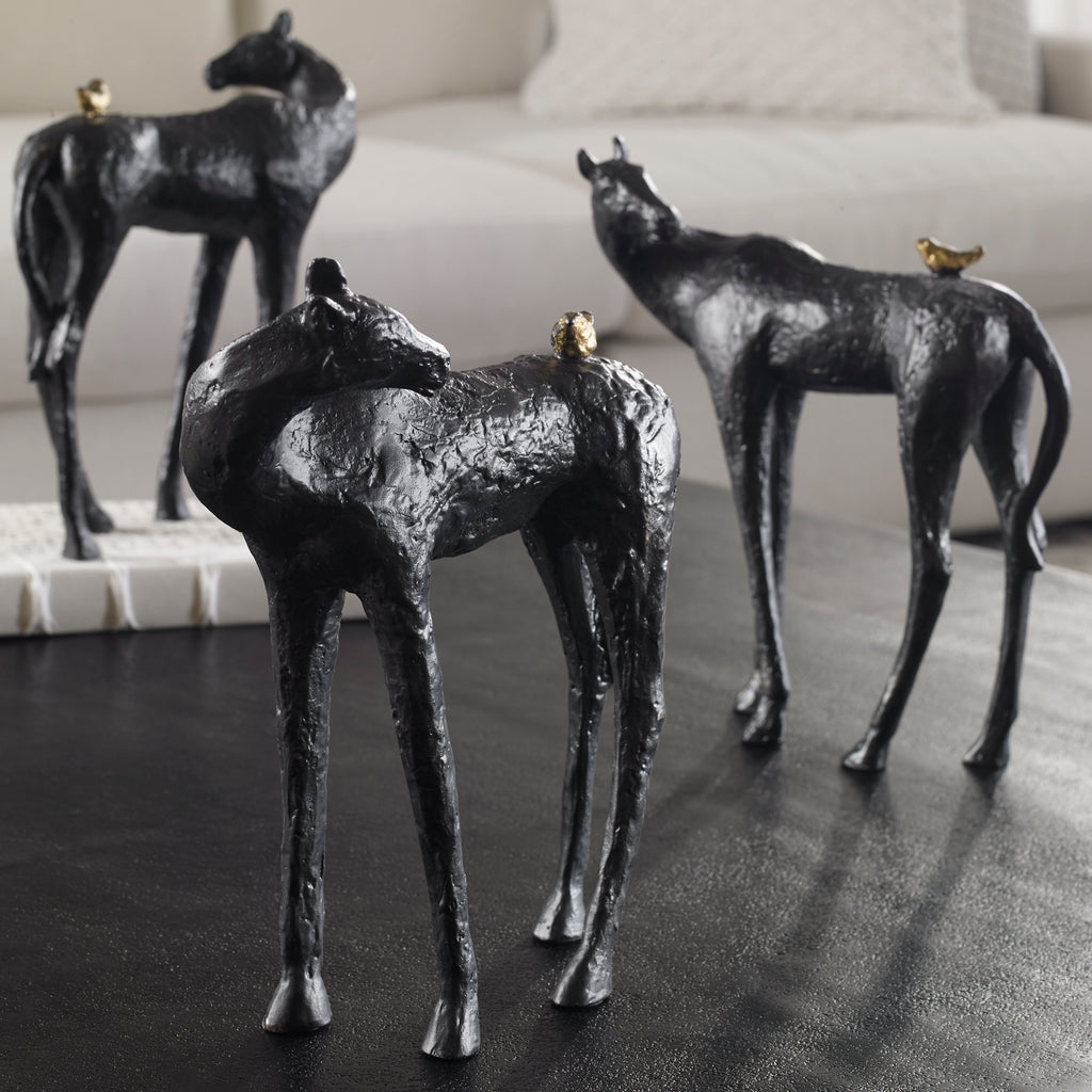 This Playful, Cast Iron, Sculpture Features A Dark Brown Horse With Light Bronze Tipping Turned To Greet The Antique Gold Bird That Has Positioned Itself On His Back. This Will Add A Cheerful Addition To Any Setting.