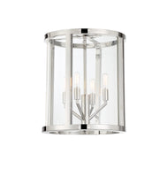 The Devon collection, designed by Libby Langdon, is a study in simple elegance with its clean lines and sleek polished nickel frame. With a variety of sizes, it can work in a myriad of different design styles. Circular at the top and bottom, its intersecting vertical frame sections showcase the fixture's height. The clear glass panels give the perfect peek at the inner angular arms, and the polished nickel finish of the candelabra arms give it a modern twist. Sometimes, a room's design requires a straightforward light fixture, but it can still be striking and become an integral part of the space. The Devon lighting collection offers a livable look that is chic, stylish and understated in just the right way.