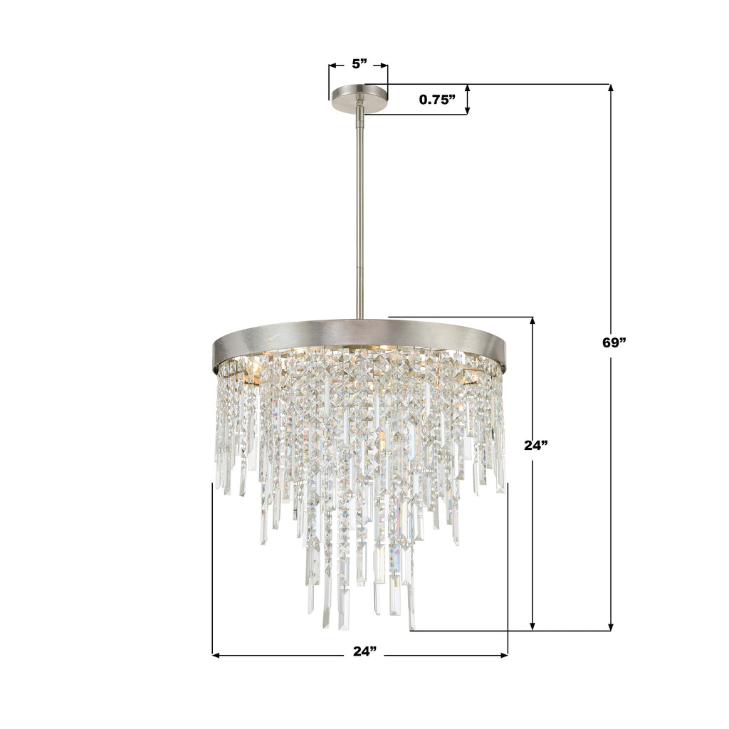 The Winfield collection's artful elegance and inspiring beauty make a sophisticated statement to an interior. This exquisite collection showcases square and rectangular multi hand cut crystal strands gracefully hanging from its metal frame. These mesmerizing crystals sparkle and reflect light, creating a dazzling display that captures attention and adds a touch of opulence to any space. Whether illuminated or not, its eye-catching presence becomes a focal point in any room.